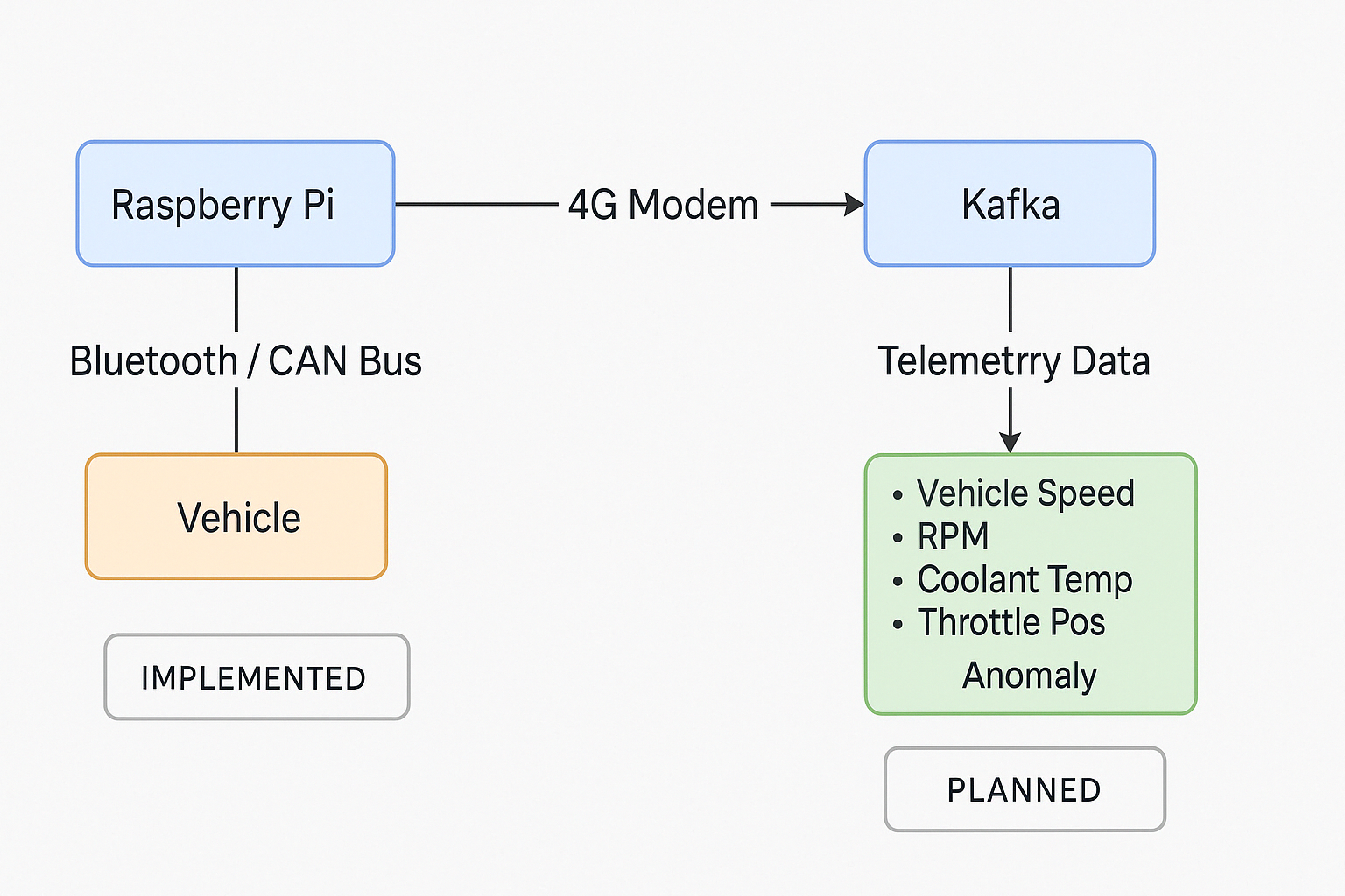 This project reads real-time vehicle telemetry (Speed and RPM) from a carβs OBD-II port using an ELM327 Bluetooth moduleand displays it on a Raspberry Pi-based instrument console.